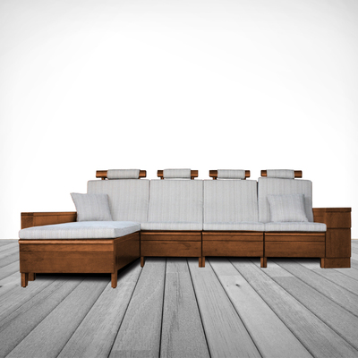 H&D 冬夏兩用柚木機能收納L型沙發組(含布套)