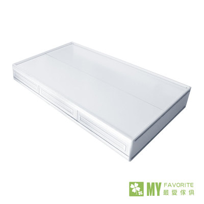 床底附活動輪移動方便並具有三個收納抽屜 , 有效解決小朋友東西太多無處收納的窘境 !