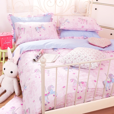 OLIVIA 夢幻樂園 旅轉木馬 粉 加大雙人床包枕套三件組