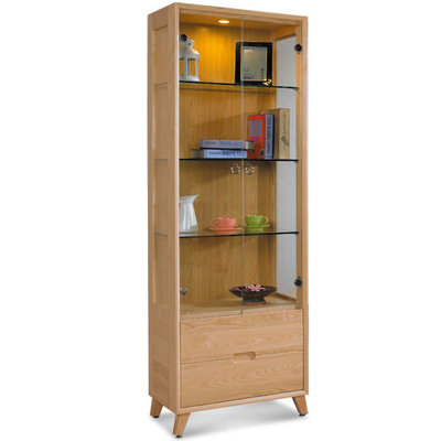 對於忙碌的現代來說,擁有簡約舒適的居家是每個人的夢想,風靡全球的北歐設計,僅利用簡單線條切割呈現天然原木的質感,搭配清爽柔和的色系,讓您沐浴在放鬆身心的溫暖居家。居家生活 黛絲芙2尺原木書櫃 正面採用栓木實木,自然細膩的紋理及色澤,讓您感受清新的居家氛圍。側板高級防蛀木心板+實木框架,真材實料結構穩固,更不用擔心蟲蟲危機,使用更安心。實木腳座更展現細膩低調的設計,原木材質的運用讓您彷彿走進自然。5mm強化玻璃內有四層可擺放各式擺飾品,而3片內部隔板則採8mm磨邊玻璃,玻璃設計讓您的收藏皆能一覽無遺,顯現空間大器美感。下方還有兩格抽屜,增加您的收納空間,並透過圓弧凹槽式把手點綴,讓整體充滿設計感,同時開合抽屜更加方便。另外還附有的按壓式LED燈,更讓您心愛的展示品能更具吸睛效果! 簡約自然的居家生活 黛絲芙2尺原木書櫃,與任何風格居家皆好搭配,如此美觀又實用的展示櫃,您絕對不能錯過喔!
