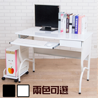 你喜歡清爽明亮的工作、閱讀環境嗎?這款鏡面質感的電腦桌會是你所想要的。熱壓成型的板材,讓桌面具有如鏡面般的質感,反射的光線,讓整體看起來更清新明亮,即防水,又容易擦拭。100公分寬的桌面,大小適中,適合平常的閱讀及書寫。若你需要更大的空間,桌面下設有鍵盤板及抽屜,鍵盤不用時可收入底下,桌面不用的雜物也都可收至抽屜裡,讓桌面保持整齊,使用空間也就更多。另外又附有滑輪主機架,主機離地,避免容易沾灰塵,也方便移動主機架。更貼心的是桌角圓弧設計,降低碰撞產生的傷害。桌腳可調式腳墊,不僅可微調地面不平的情況,也不易刮傷地板的貼心設計。這麼功能齊全、質感又優的優質電腦桌,你能不心動嗎?快買回家吧!
