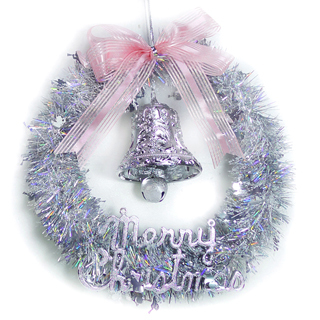 【聖誕裝飾特賣】10吋銀色歡樂金蔥浪漫雪紗花圈