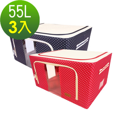 Life Plus日系點點鋼骨收納箱55Lx3入(可選色)