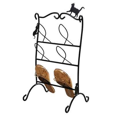 造型簡潔顏色現代,尺寸置放於室內玄關、客廳均適合,可置放6雙拖鞋或便鞋!若是放置門外尺寸上也大小恰當。開放式設計通風之外又好拿取;3隻活潑的貓咪躍上鞋架,或跳躍或走動,使整組鞋架添增俏皮氣息,個性黑的顏色也與神秘的貓咪不磨而合,是家家戶戶均適用的拖鞋架~