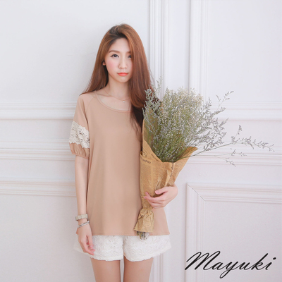 東京著衣-MAYUKI 拼鉤花傘狀絲質上衣-S.M(共三色)-4002761