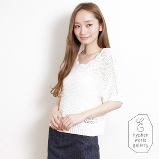 【☆E hyphen☆】EMMA代言款-鏤空五分袖針織衫-白色(20141C92030102106)
