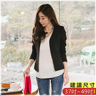 【臺灣渥瑪中大尺碼女裝】韓版秋季OL風格修身無領拉鍊西裝外套#W9742(黑-紅)商品網址: http://www.momoshop.com.tw/goods/GoodsDetail.jsp?i_co...