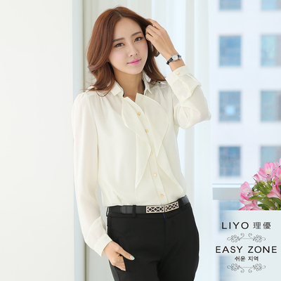 襯衫 韓系通勤長袖雪紡上衣(共2色)LIYO理優