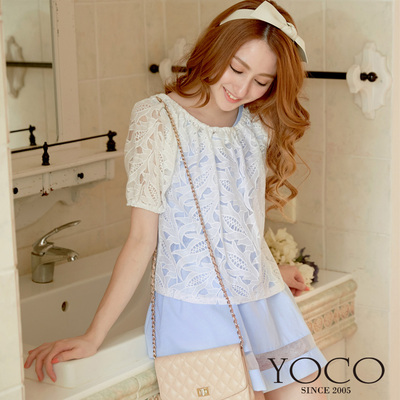 東京著衣-YOCO 鉤花罩衫+拼接縮腰背心-S.M(共三色)-4014256