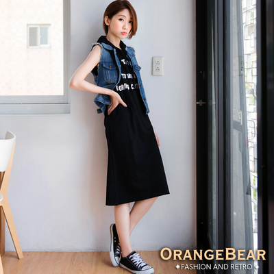 • 英文燙印圖X連帽無袖長洋裝好輕鬆的感覺!