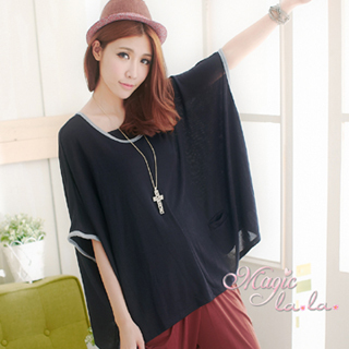 【魔法拉拉】配色領圈時尚百搭上衣A144(百搭黑)