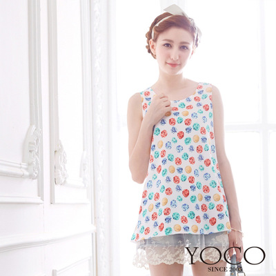 東京著衣-YOCO 鑽石印花拼蕾絲雪紡背心-S.M(共三色)-4011733