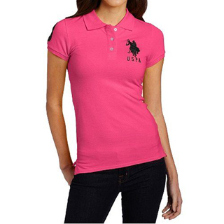 【預購US Polo】2013女左胸黑色大馬標粉紅色Polo衫-網(預購)