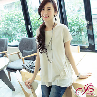 【I-Seoul正韓】9242荷葉拼接麻紗長版假二件-現貨(杏色)