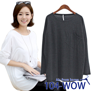 【預購104-WOW】圓領斜口袋寬鬆長袖T恤(共5色)