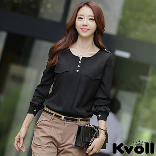 【KVOLL中大尺碼】黑色休閒圓領顯瘦百搭雪紡襯衫商品網址: http://www.momoshop.com.tw/goods/GoodsDetail.jsp?i_code=2256920&memid...