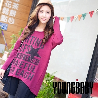 【YOUNGBABY中大碼】銀鑽星星後V花蕾絲磨毛T(共3色)