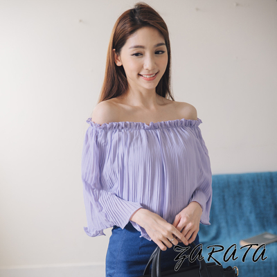 上衣-素面壓摺線條雪紡短版上衣(紫色)-ZARATA商品網址: