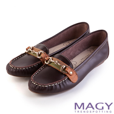 MAGY 舒適休閒 真皮金屬釦環帆船鞋-咖啡