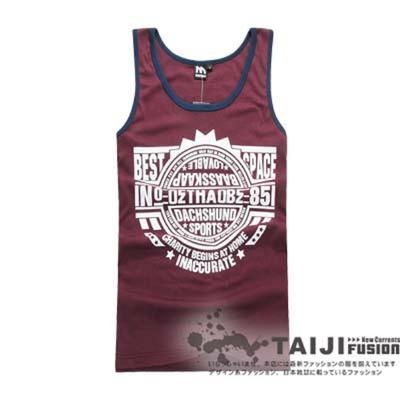 TAIJI 街頭風格‧字母LOGO圖案印花平版背心‧紅色‧條紋-設計-美式-民族