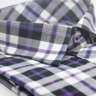 【金‧安德森】紫.黑.白色格紋窄版長袖襯衫