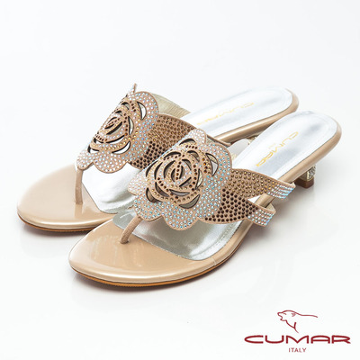 CUMAR名媛必備‧大山茶花珠鑽夾腳涼鞋-金色