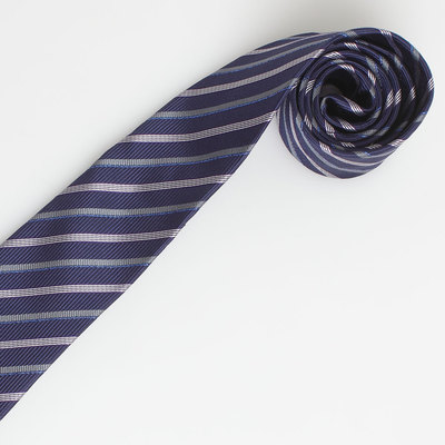 極品西服質男品味雙色款‧100%全蠶絲領帶_粉藍紋