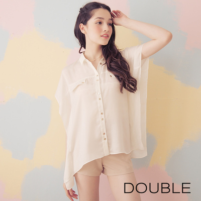【DOUBLE】造型假口袋寬版襯衫(白S-L)