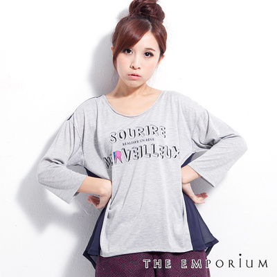 THE EMPORIUM 雪紡拼接後背簍空七分袖上衣(共三色)