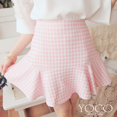 東京著衣-YOCO 正韓?粉彩千鳥格魚尾短裙(共三色)