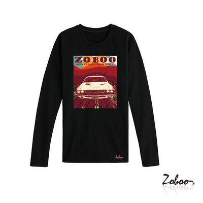 Zoboo 純棉長袖圓領T恤-美式復古塗鴉老爺車商品網址: