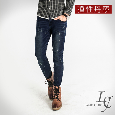 L'AME CHIC 韓國休閒扣環設計潑漆刷色丹寧窄版牛仔褲商品網址: