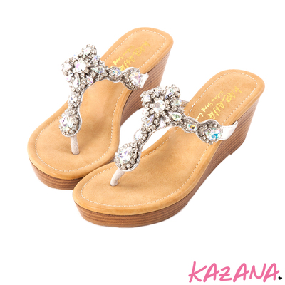 KAZANA絢美夏日-璀璨華麗寶石夾腳楔型涼鞋 銀商品網址: