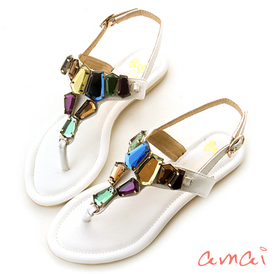 amai異國風寶石T字夾腳涼鞋-後拉繫帶.希臘白
