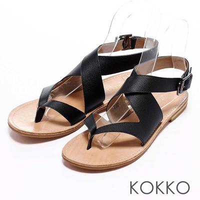 KOKKO中性時尚美學?歐美風範率性皮中底涼鞋-個性黑商品網址: