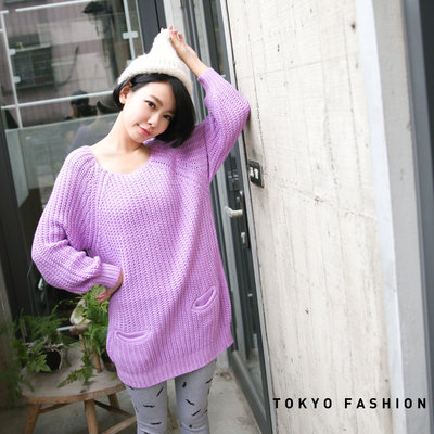 【東京著衣】糖果色長版口袋粗織毛衣(共六色)-3023519