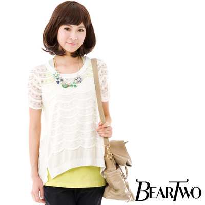• BearTwo 波浪蕾絲打褶T恤 (白色)