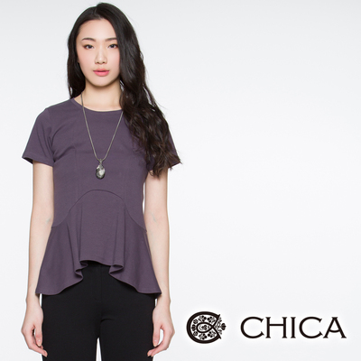 CHICA 下擺荷葉純棉短袖上衣(共二色)