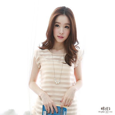 糖罐子-波浪袖網紗條紋棉衫(共二色)商品網址: