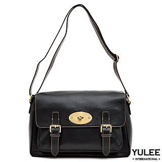 【YULEE真皮包包】Leather真皮金扣包-黑
