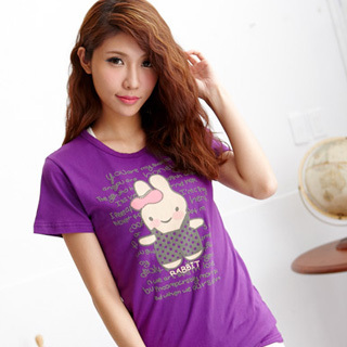 【S-7L熊衣褲語】微笑兔英文書信印字短袖圓領棉T T158(黑、紫S-2L)