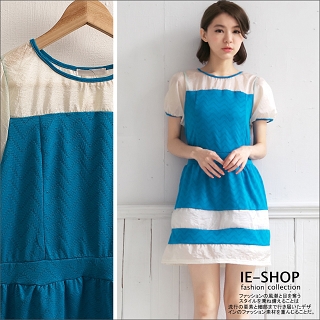 【IE-SHOP】肩紗裙襬拼接洋裝