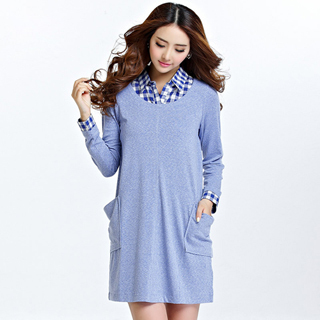 修身款式,有效遮掩小肚肚,人體工程學口袋,針織與格仔紋拼接假兩件,繭式長款襯衫.