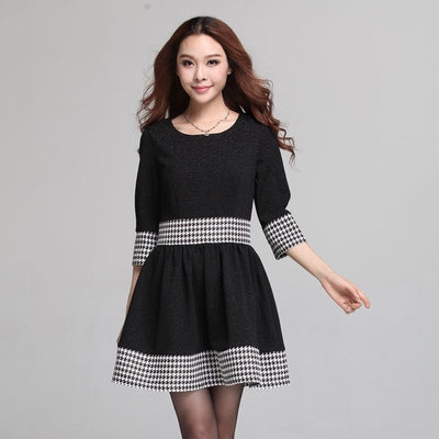 - 一款甜美公主裙,採用千鳥格面料拼接,凸顯衣服高檔典雅。