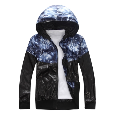 | 商品名稱:暗夜星空閃電圖騰防風連帽外套(三色)