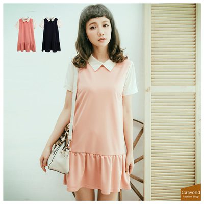領子下擺波浪洋裝共二色Catworld