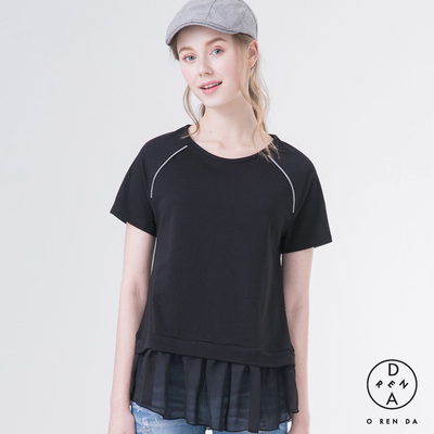 ORENDA-MIT拉鍊造型拼雪紡上衣-S.M.L-黑