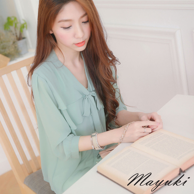 東京著衣-MAYUKI 蝴蝶領結荷葉雪紡襯衫-S.M(共四色)-4002140