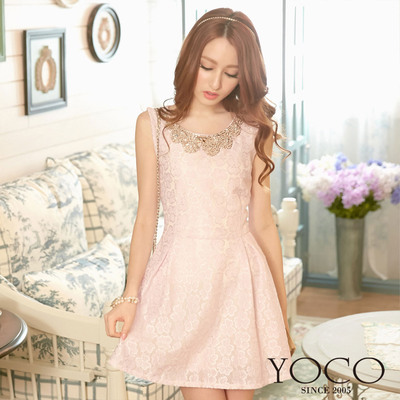 東京著衣-YOCO 亮片珠花領蕾絲洋裝-S.M(共二色)-4006008