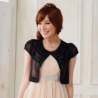 【菟絲花】韓版甜美百搭空調衫開衫大碼短外套網紗姐妹禮服短袖小外套(大尺碼)